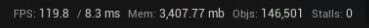 Normally, when you're playing your game, you'll see this object count climbing rapidly as the game loads and everything initialises, and then fluctuate up and down, but settle in a steady range over time.